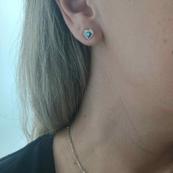 Brinco em Prata 925 Coração com detalhes na borda e abalone.