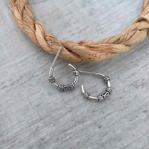 Argola em Prata 925, estilo Bali, com detalhes envelhecidos.