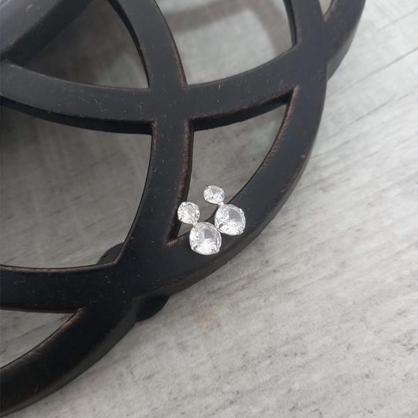 Brinco Prata Clara 925, com duas Zircônias Redonda Cristal