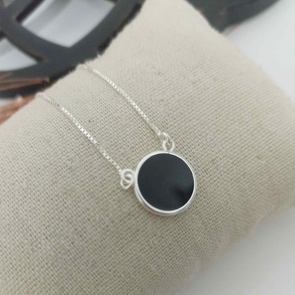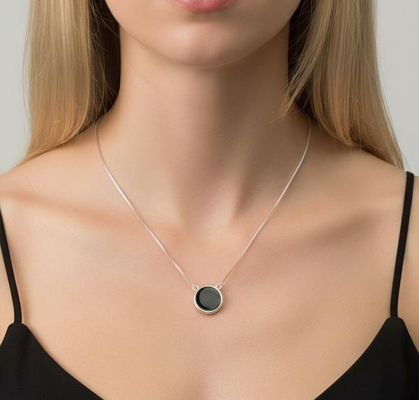 Colar em Prata 925 , pingente fixo Liso Redondo Ônix