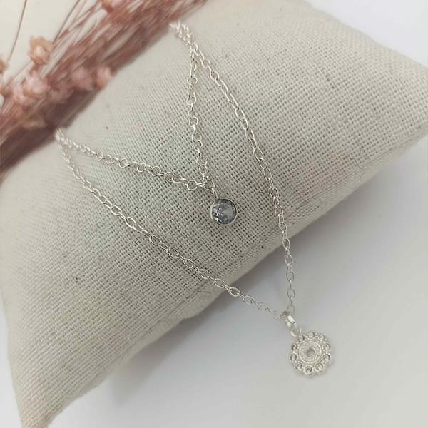 Colar em Prata 925 Duplo, com ponto de luz e flor cravejada com zircônias.