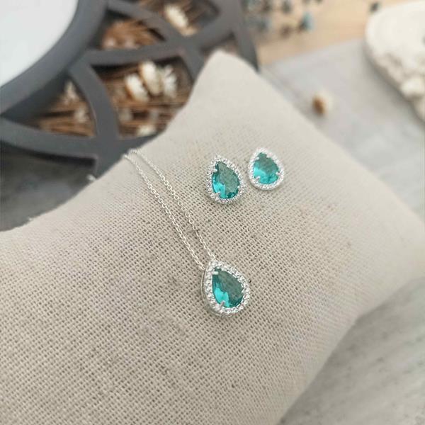 Conjunto Gota Luxo Zircônias Verde-Água