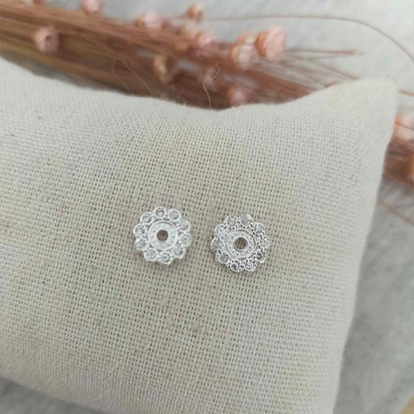 Brinco em Prata 925 , formato de Flor cravejada com zircônia cristal