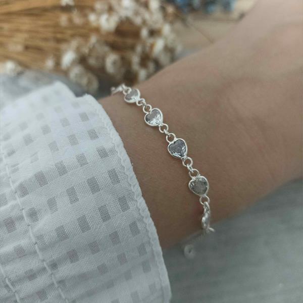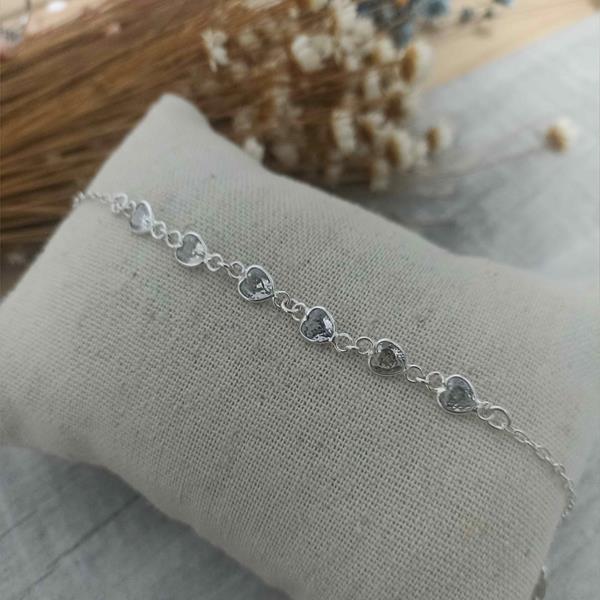 Pulseira em Prata 925, com 6 Corações Zircônia Cristal
