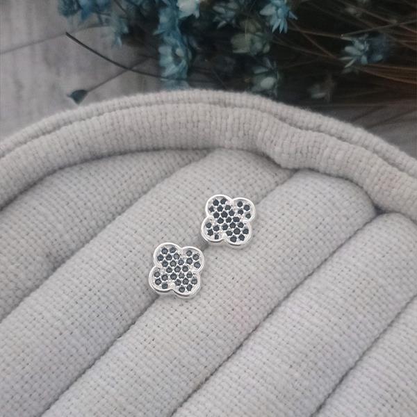 Brinco em Prata 925, trevo inspiração com microzirconias ônix