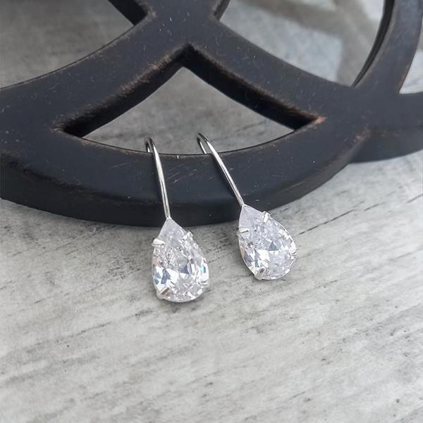 Brinco Gancho em Prata Clara 925, com uma zircônias em formato de gota.