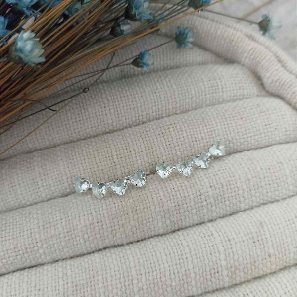 Brinco Ear Cuff em Prata Clara 925, com quatro zircônias, aquamarine coração.