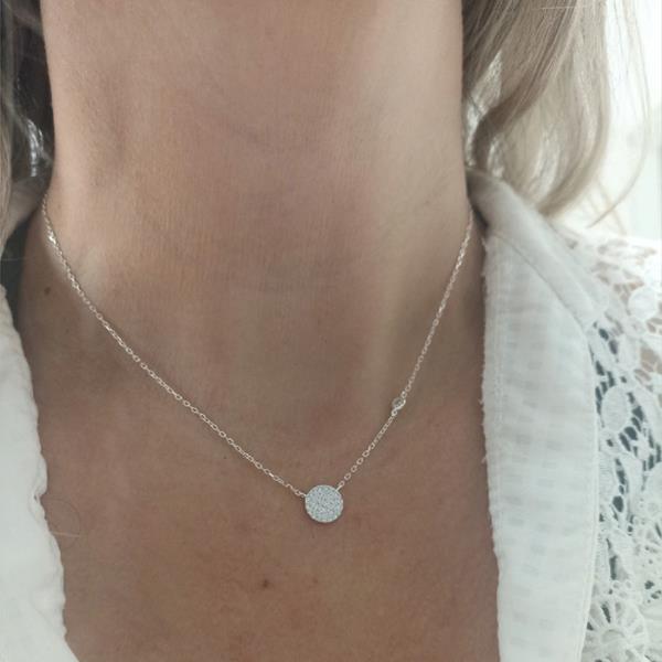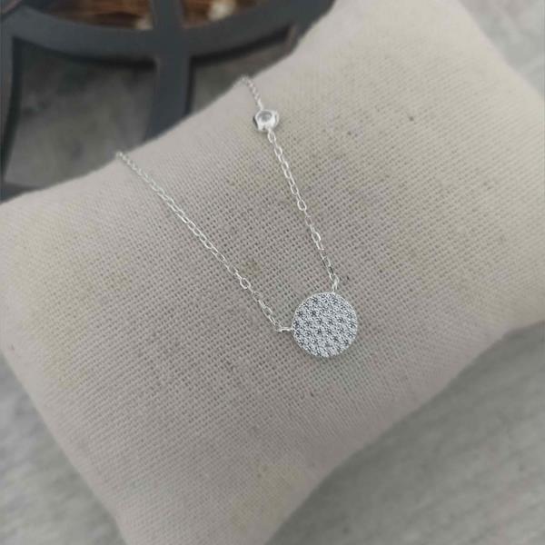 Colar em Prata 925, Pingente de 1 cm fixo redondo com microzircônias lapidadas, e uma mini zircônia na lateral.