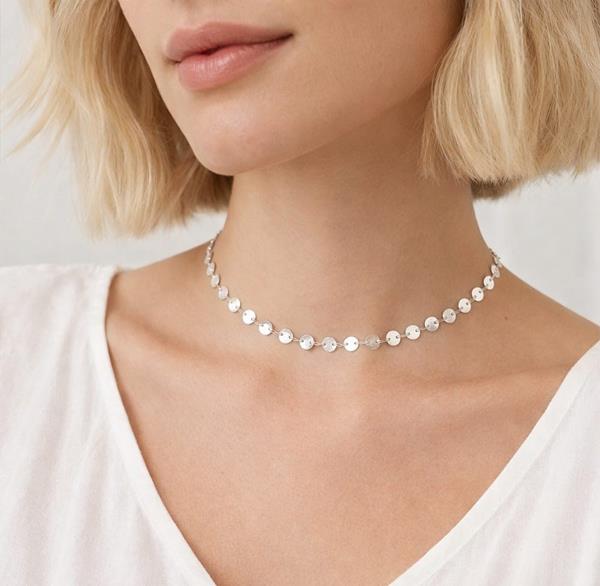 Choker em Prata 925 Bolinhas Chapa lisa.