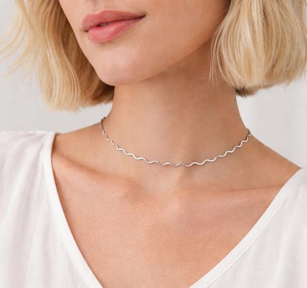 Choker em Prata 925, formato de ondas laminadas