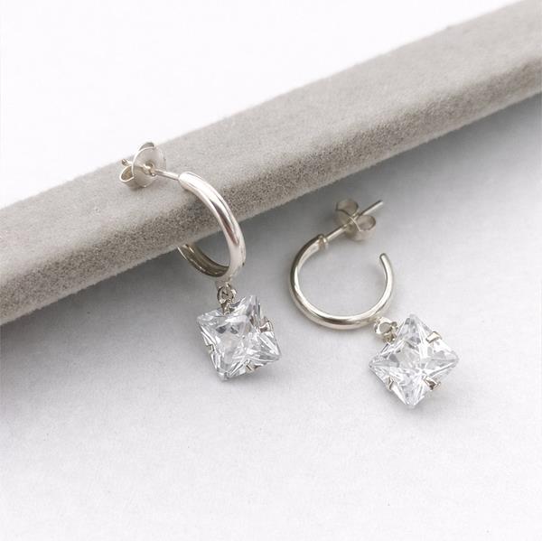 Brinco Argola com tarraxa em Prata 925 Zircônia Quadrada Cristal.