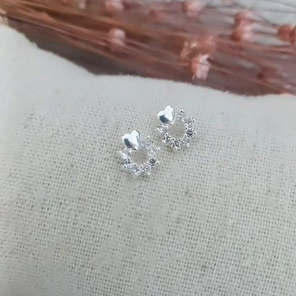 Brinco Circulo com Zircônias em Prata Clara 925 e coração liso.